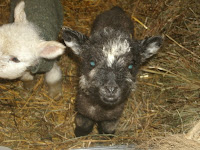 Next, my black ewe Rusetti (who should have had twins or triplets) gave birth to a beautiful black ewe. Quick is the sire. She is all black except for white spots on the top of her head, her lips and chin, and the very tip of her tail. And yes, she is staying right here. What a beautiful ewe.